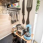 - ❓Une cuisine est-elle disponible à l'appartement spacieux pour les clients ?Oui, l'appartement spacieux est équipé d'une cuisine équipée et propose également une bouilloire électrique, un réfrigérateur et de la vaisselle.